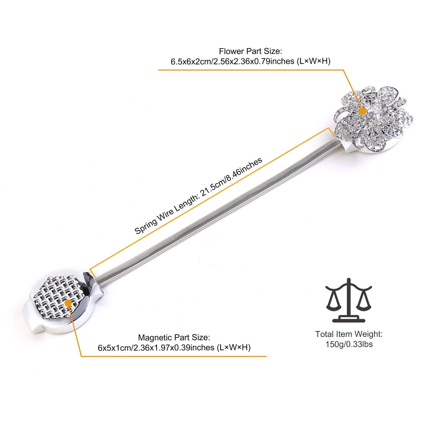**Durable Materials and Classic Outlook*:Adopt zinc alloy and plastic materials; lightweight but durable. Dotted by acrylic crystal beads and designed with symmetric floral pattern; our magnetic curtain tiebacks can add much romantic and classic atmosphere to your curtain and beautify your home.